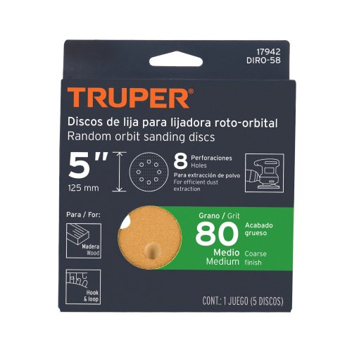 DISCOS DE LIJA ROTO ORBITAL 5″,GRANO 80